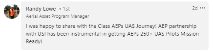 The training I received from USI has been a game-changer for my career. The USI courses not only deepened my understanding of remotely piloted systems and safety in business aviation, but their expert-led instruction also equipped me with the skills and confidence to excel in this innovative field. USI provides endless opportunities for growth and leadership in the future of aviation, and I offer my special thanks to them for their exceptional support and guidance.